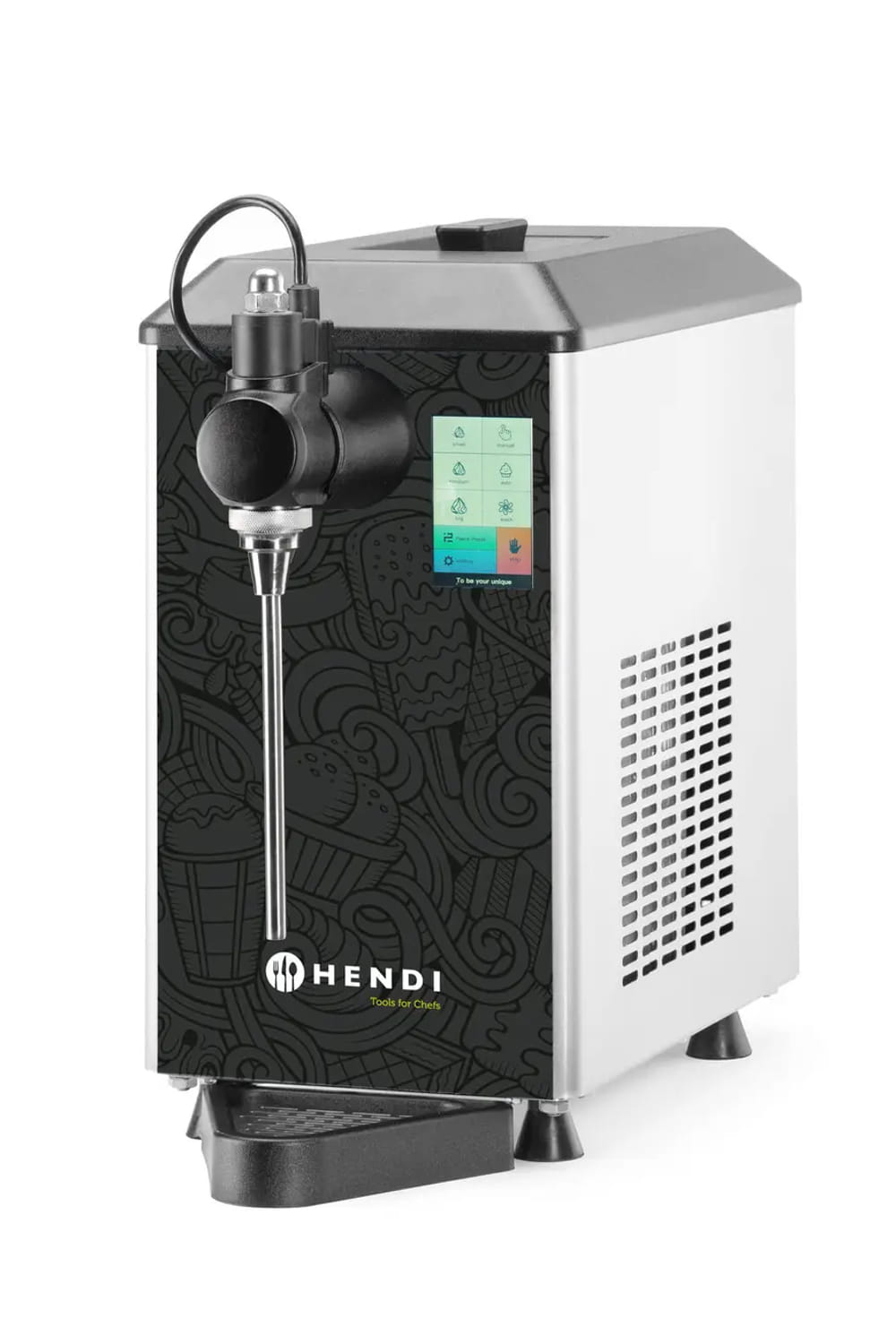 Automat do bitej śmietany marki Hendi stanowi doskonałe wyposażenie dla kawiarni, lodziarni i cukierni, w których bita śmietana jest częstym dodatkiem do kawy i deserów. Urządzenie posiada certyfikat zgodności CE