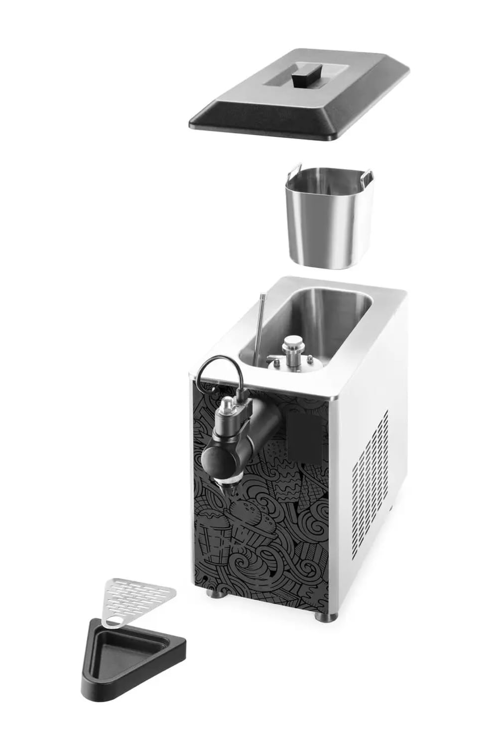 Obudowa, pojemnik na śmietanę oraz wewnętrzne elementy konstrukcyjne wykonane zostały z wysokiej jakości stali nierdzewnej. Jest ona trwała, odporna na korozję a przy tym jest łatwa w utrzymaniu w czystości dzięki czemu zachowa nienaganny wygląd przez długi czas.