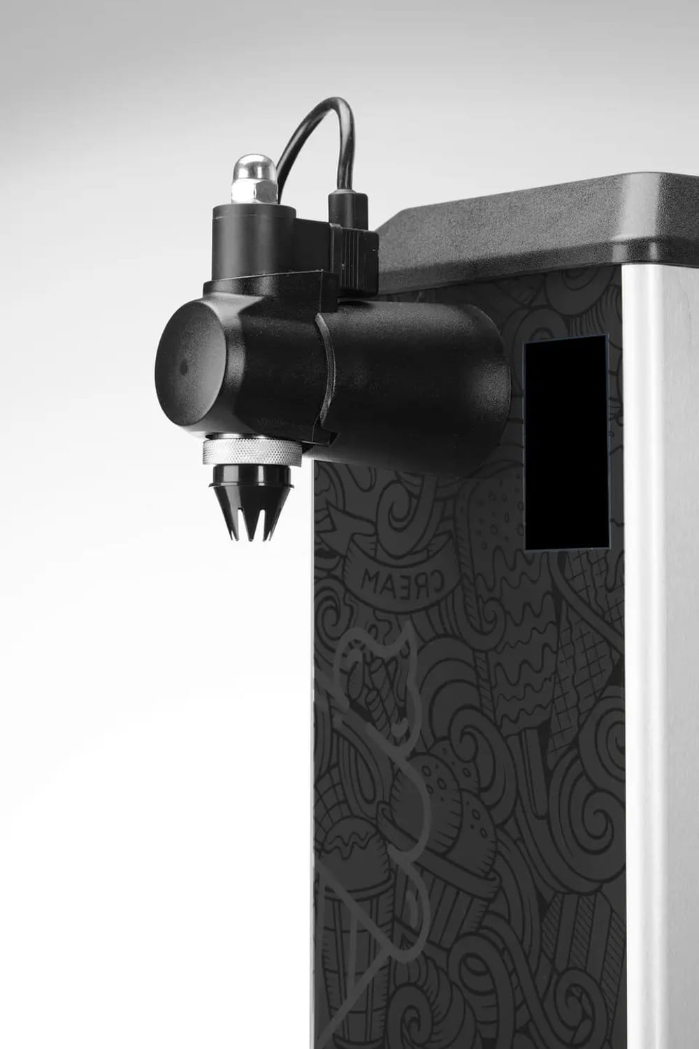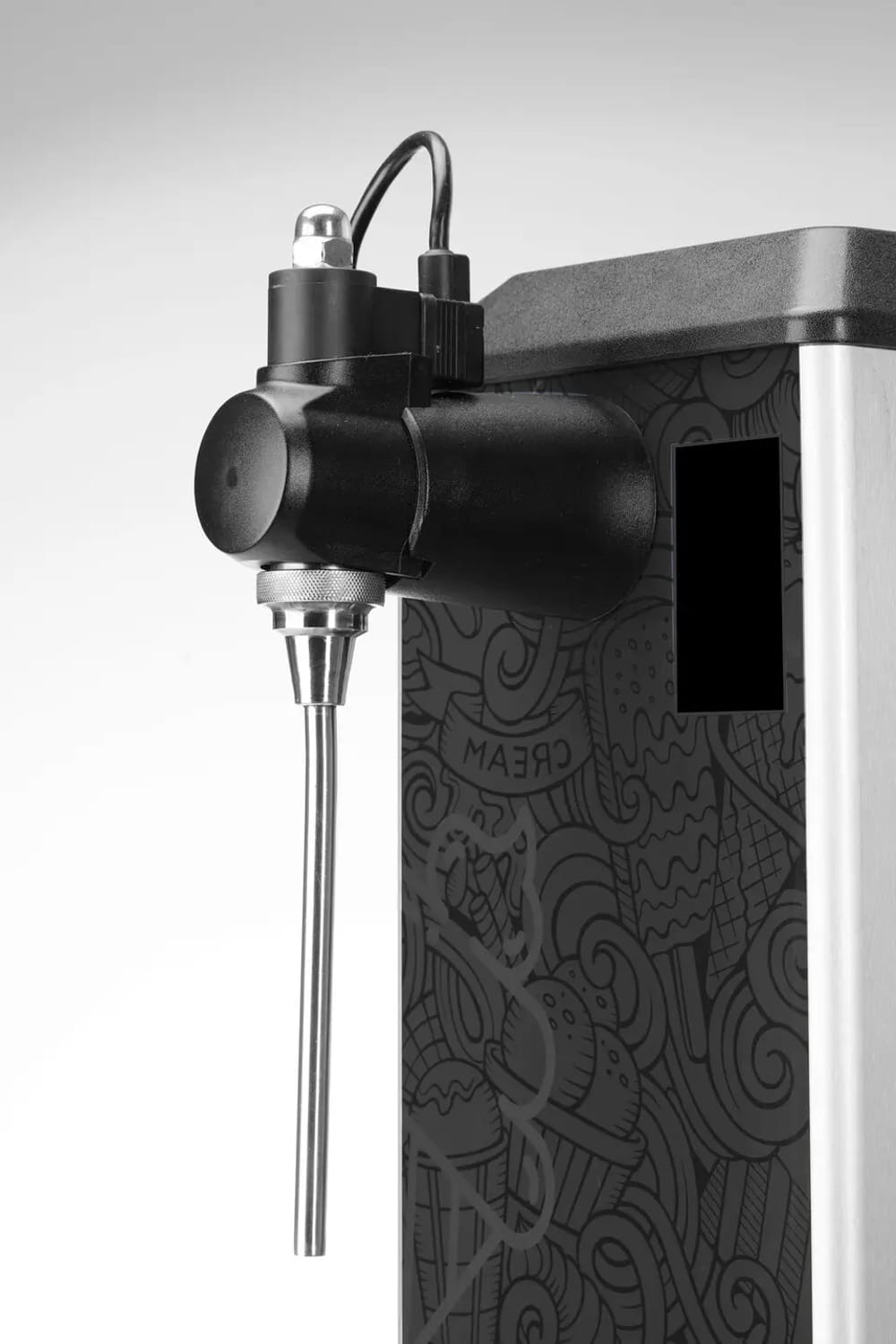 Automat wyposażono w intuicyjny panel sterowania umożliwiający wygodny wybór wielkości porcji (mała, średnia lub duża). Urządzenie może porcjować śmietanę w trybie automatycznym lub manualnym. Pokrętło pozwala na regulację stopnia napowietrzenia śmietany.