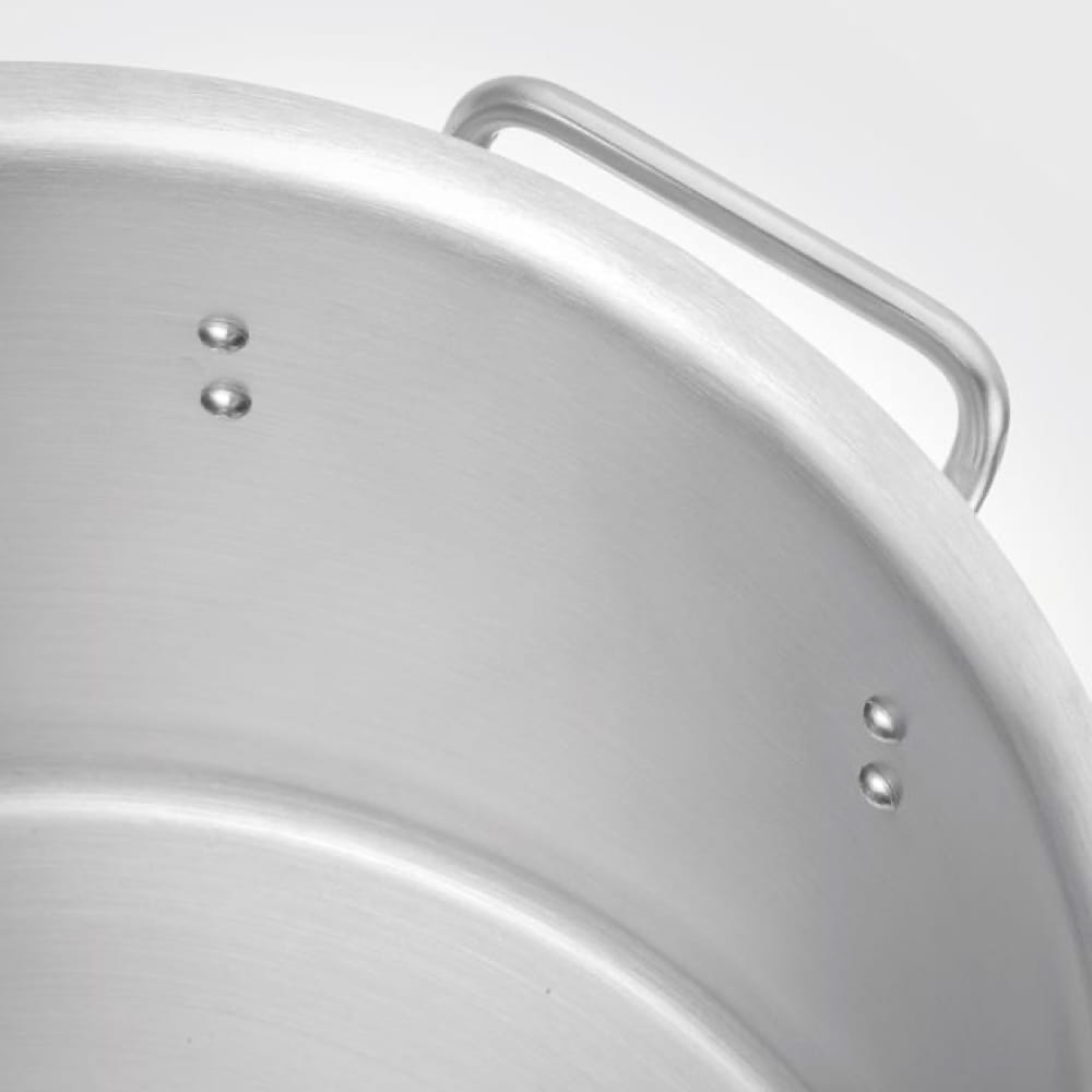 Garnek posiada nienagrzewające się, nitowane uchwyty. W zestawie znajduje się także pokrywa z otworem odprowadzającym parę.