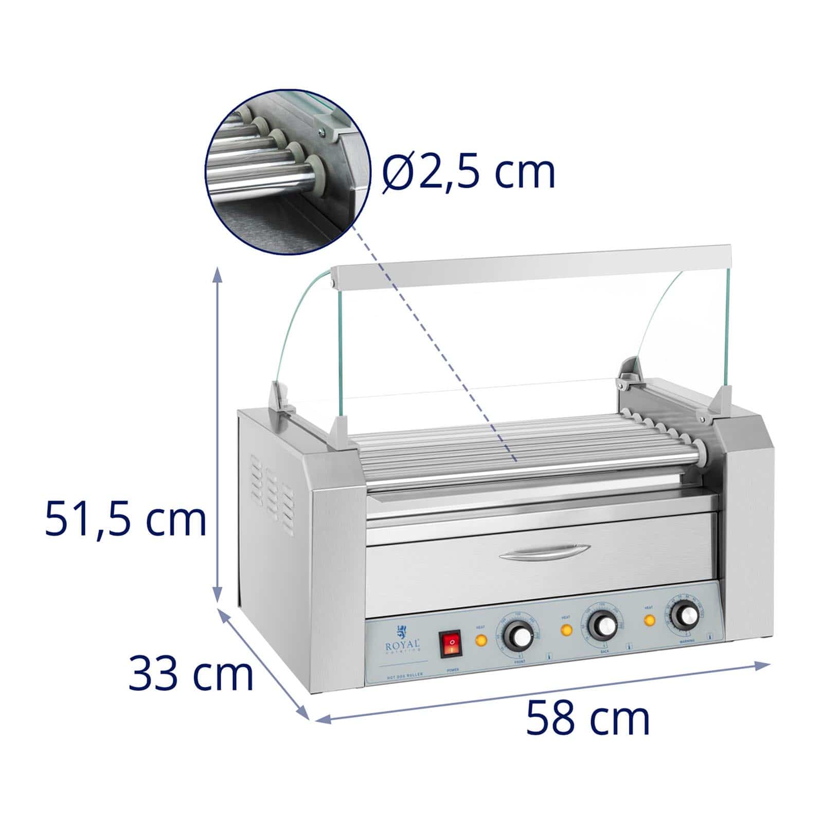 Urządzenie 2 w 1 do hot-dogów marki Royal Catering idealne sprawdzi się w różnego rodzaju punktach gastronomicznych na stacjach benzynowych i w barach szybkiej obsługi. Pozwoli na jednoczesne podgrzewanie kiełbasek, parówek bądź frankfurterek na podgrzewaczu rolkowym, oraz bułek lub innego pieczywa w specjalnie do tego przeznaczonej szufladzie. Urządzenie posiada certyfikat CE i spełnia wymagania Sanepidu.