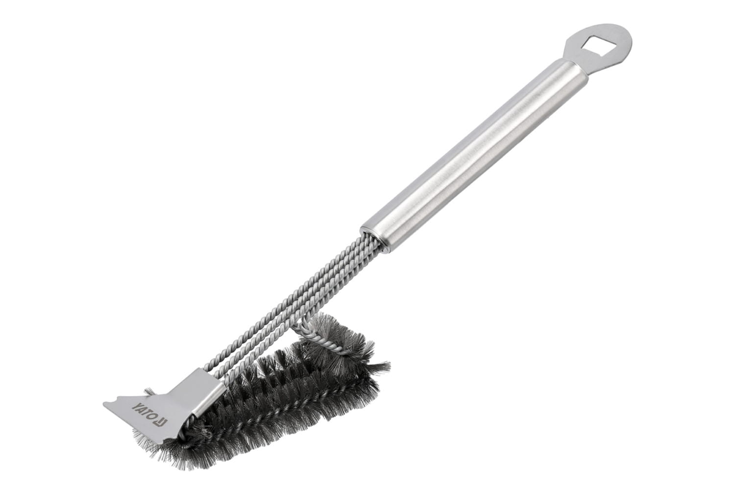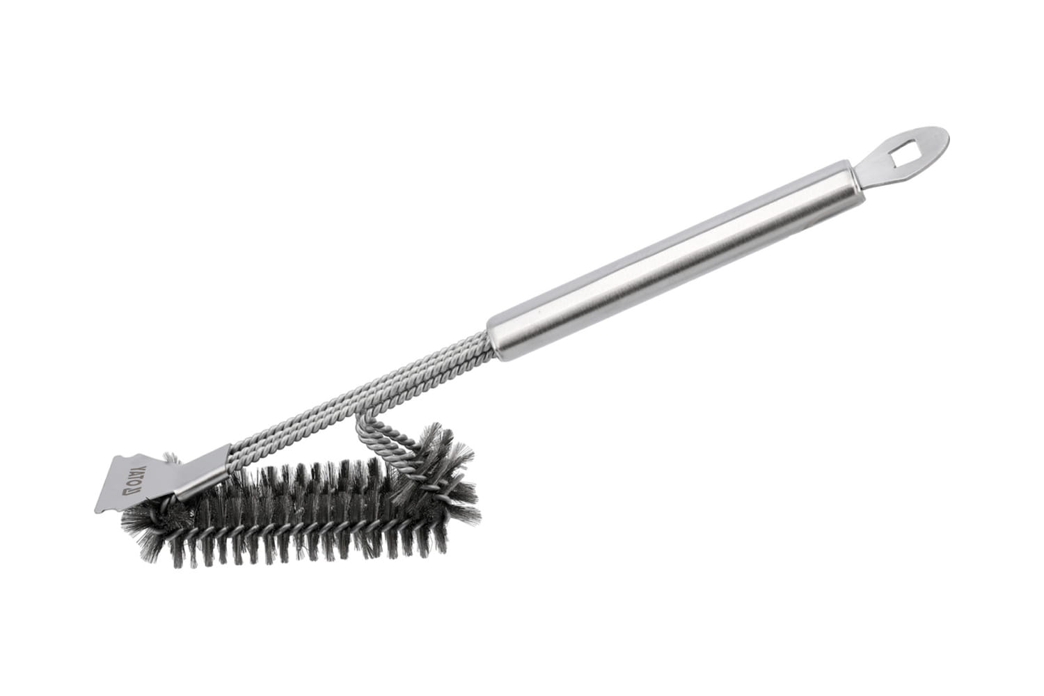 Szczotka posiada skrobak a przy rękojeści także otwieracz do butelek.