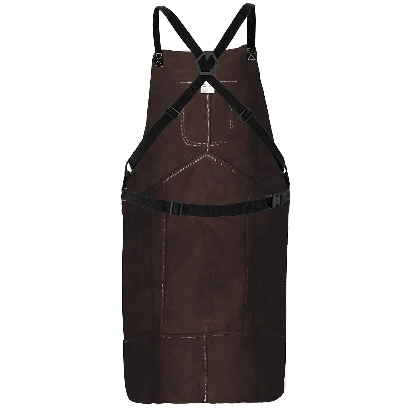 Fartuch wykonano z wysokiej jakości wytrzymałej i elastycznej dwoiny bydlęcej. Całość zeszyto ognioodpornymi nićmi.