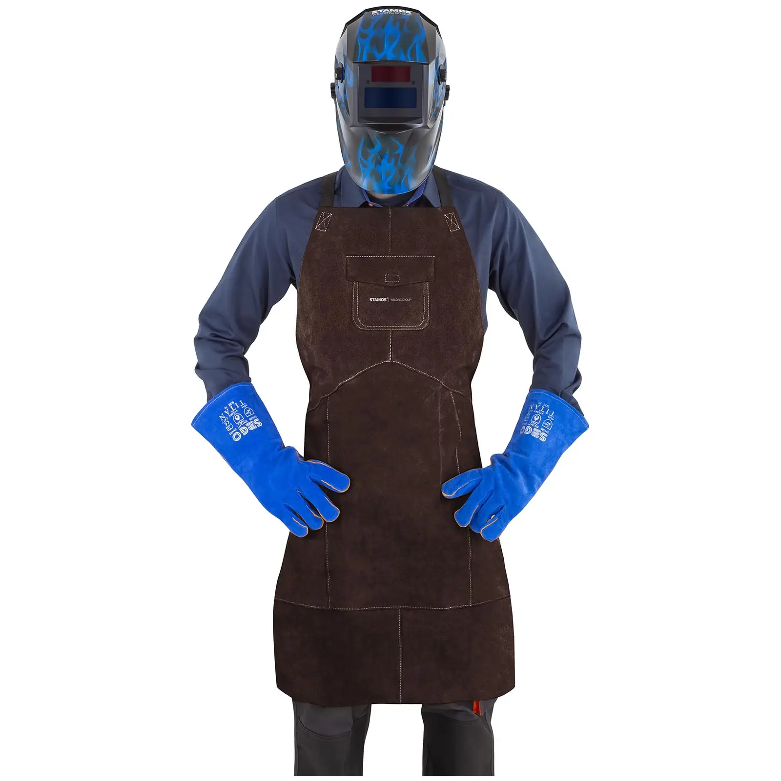 Fartuch spawalniczy marki Stamos sprawdzi się zarówno w profesjonalnym, jak i amatorskim użytku podczas spawania MMA, MAG, MIG, spawania łukowego drutem proszkowym samoosłonowym, cięcia plazmą, żłobienia, cięcia tlenowego oraz natryskiwania cieplnego. Zapewnia ochronę przed iskrami, odpryskami metalu i wysoką temperaturą.