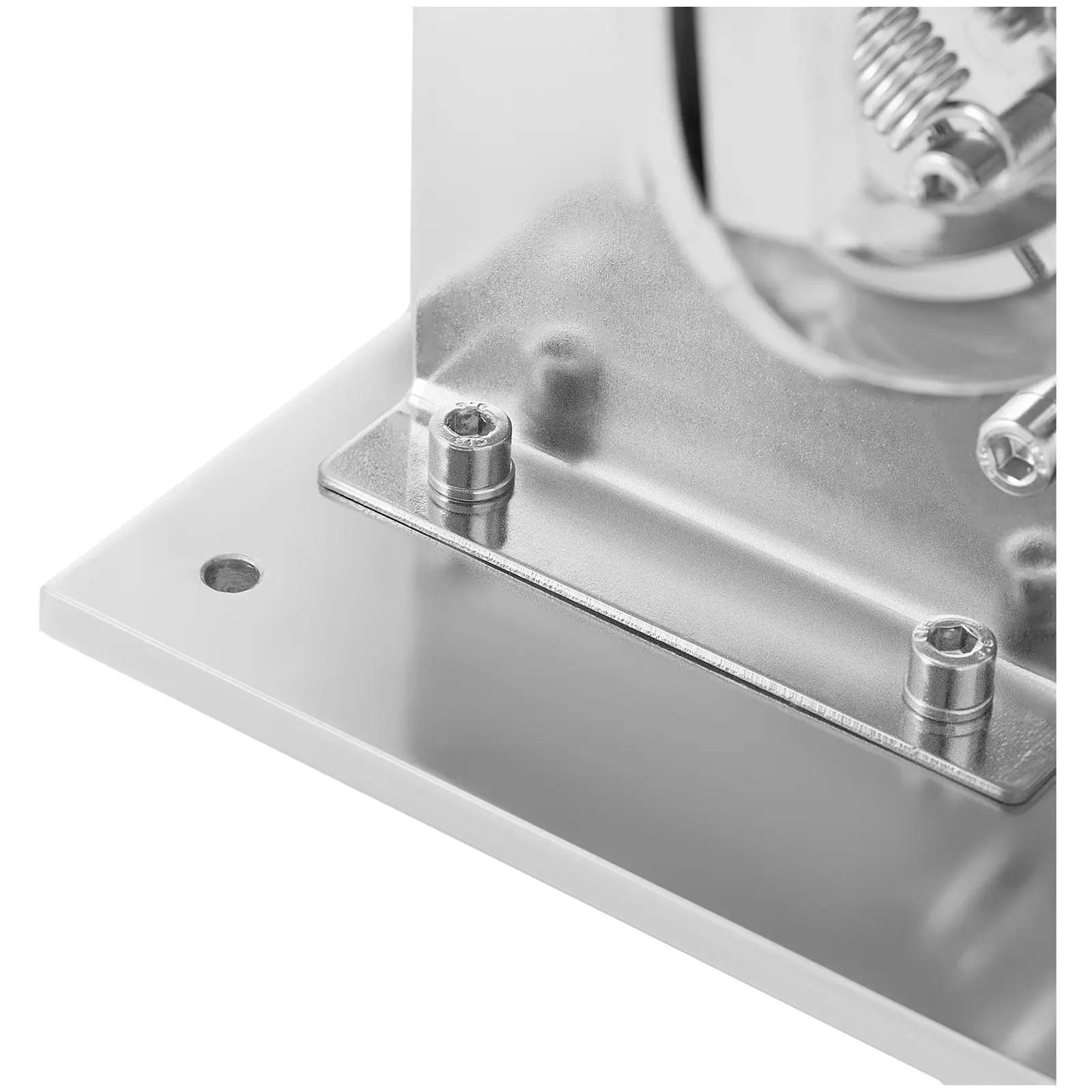 Klipsownica wykonana została z chromowanego żelaza. Szeroka podstawa z antypoślizgowymi nóżkami zapewnia odpowiednią stabilność w czasie pracy. W razie potrzeby podstawę można przykręcić do podłoża.