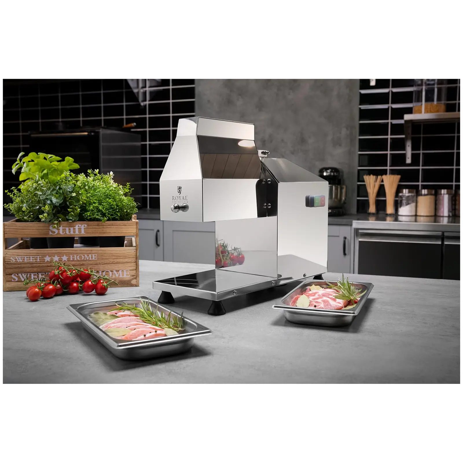 Kotleciarka marki Royal Catering umożliwi sprawne i efektywne zmiękczanie różnych rodzajów mięs, przyspieszając pracę w restauracjach, stołówkach i kantynach. Sprawdzi się także jako wyposażenie sklepów mięsnych, oferujących usługę rozbijania kotletów. Urządzenie posiada certyfikat CE i spełnia wymagania Sanepidu.