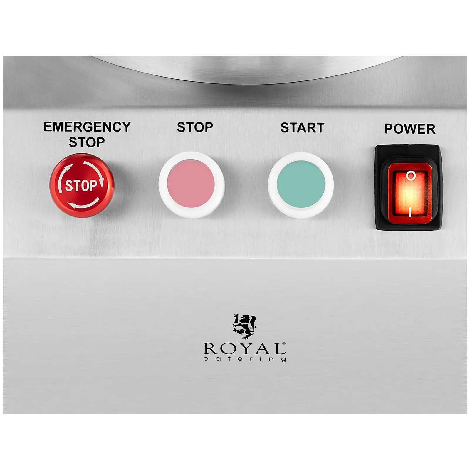 Kuter marki Royal Catering to profesjonalne urządzenia do cięcia, siekania i miksowania zarówno mięsa, jak i warzyw. Sprawdzi się w rozmaitych lokalach gastronomicznych i restauracjach. Urządzenie posiada certyfikat zgodności CE i spełnia wymagania branży gastronomicznej.