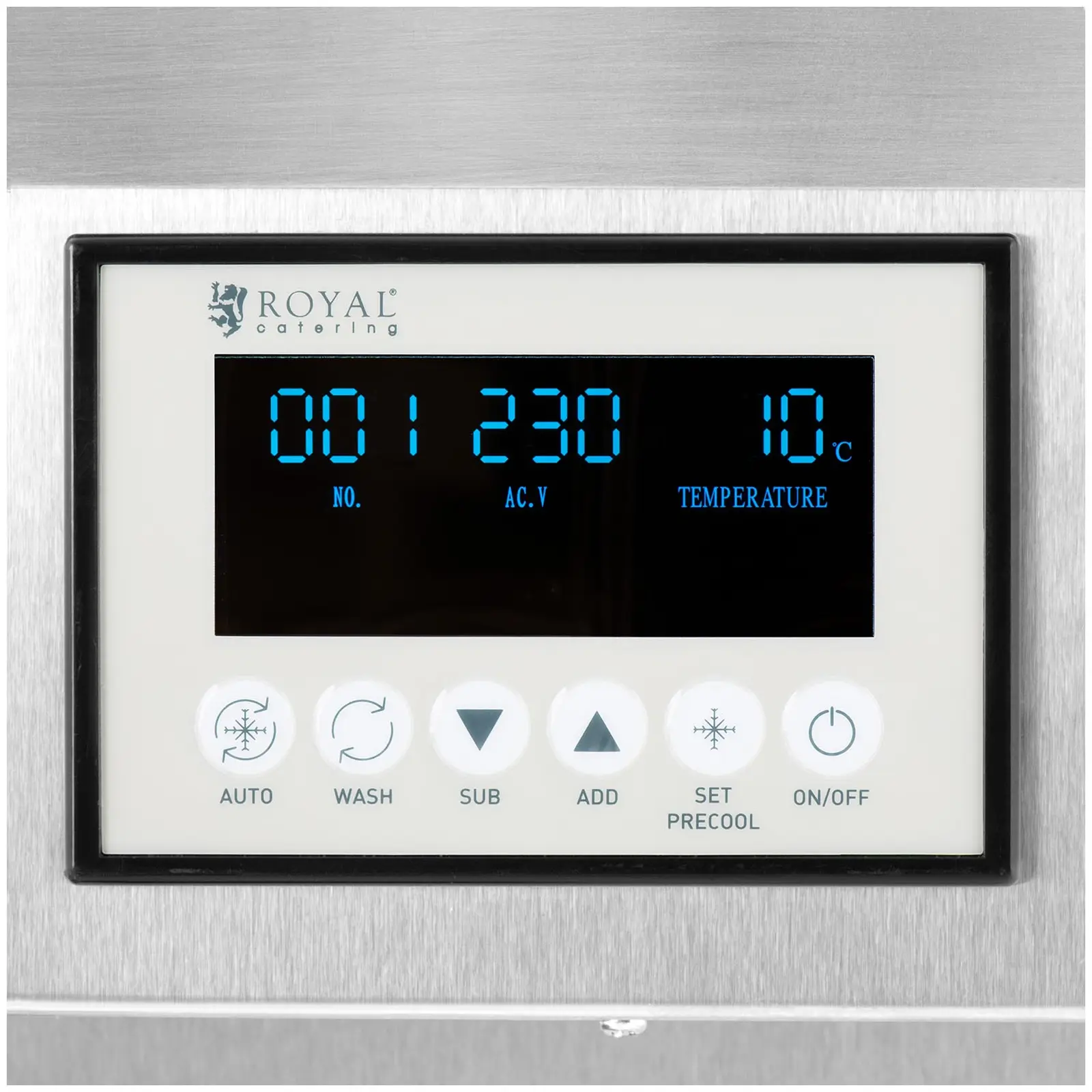 Maszyna do lodów włoskich marki Royal Catering sprawdzi się zarówno w lodziarniach i kawiarniach a także na różnego rodzaju festynach rodzinnych, w parkach rozrywki itp. Maszyna pozwoli szybko wytworzyć lody, mrożony jogurt czy sorbety oraz sprawnie je serwować. Posiada certyfikat CE i spełnia wymagania branży gastronomicznej.