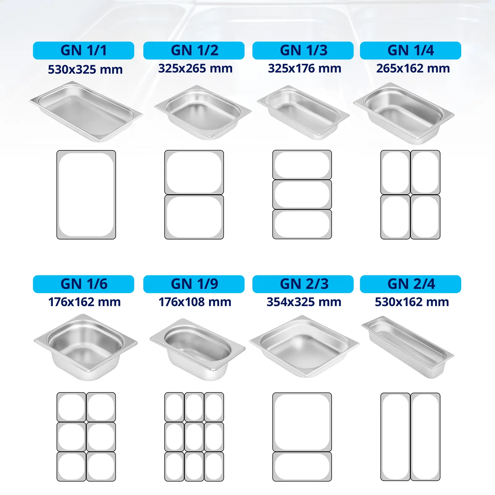 Pojemniki GN stanowią niezbędne wyposażenie restauracji, lokali gastronomicznych, stołówek i punktów zbiorowego żywienia. Mogą być stosowane w bemarach, witrynach i ladach chłodniczych oraz samodzielnie jako pojemniki do przechowywania żywności.