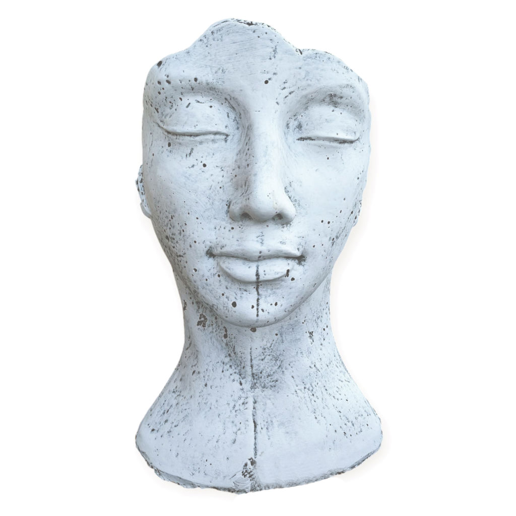 Rzeźba ogrodowa twarz kobiety 120cm XXL kolor biały, betonowa - imponująca dekoracja ogrodowa