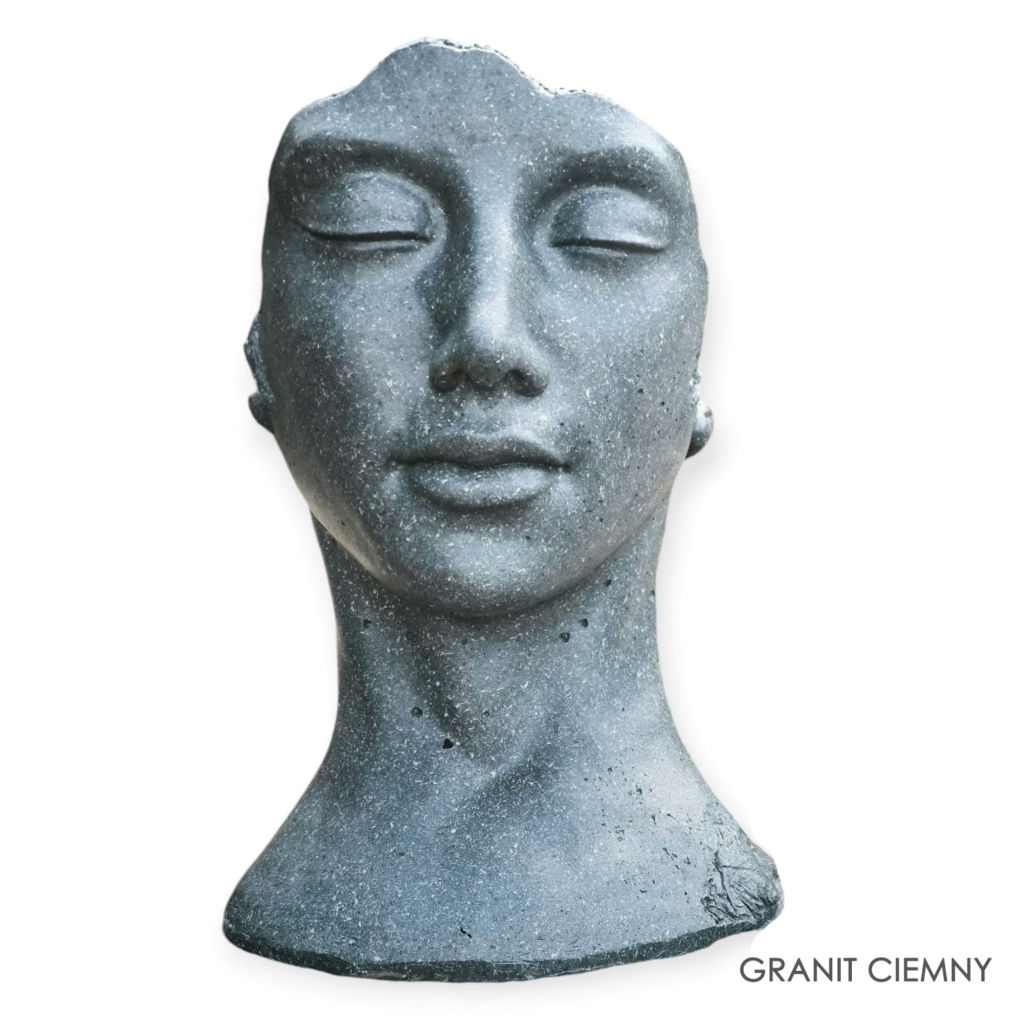 Rzeźba ogrodowa twarz kobiety 120cm XXL kolor granit ciemny, betonowa - imponująca dekoracja ogrodowa