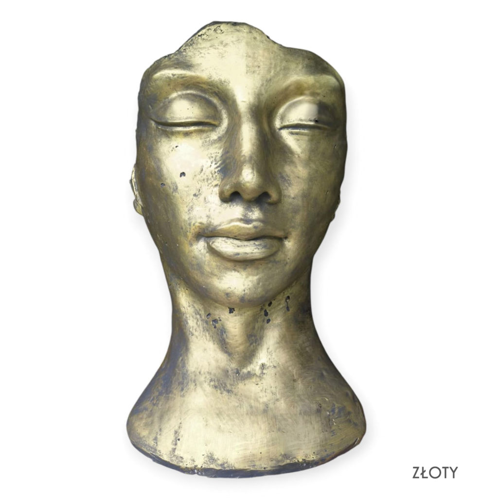 Rzeźba ogrodowa twarz kobiety 120cm XXL kolor złoty, betonowa - imponująca dekoracja ogrodowa