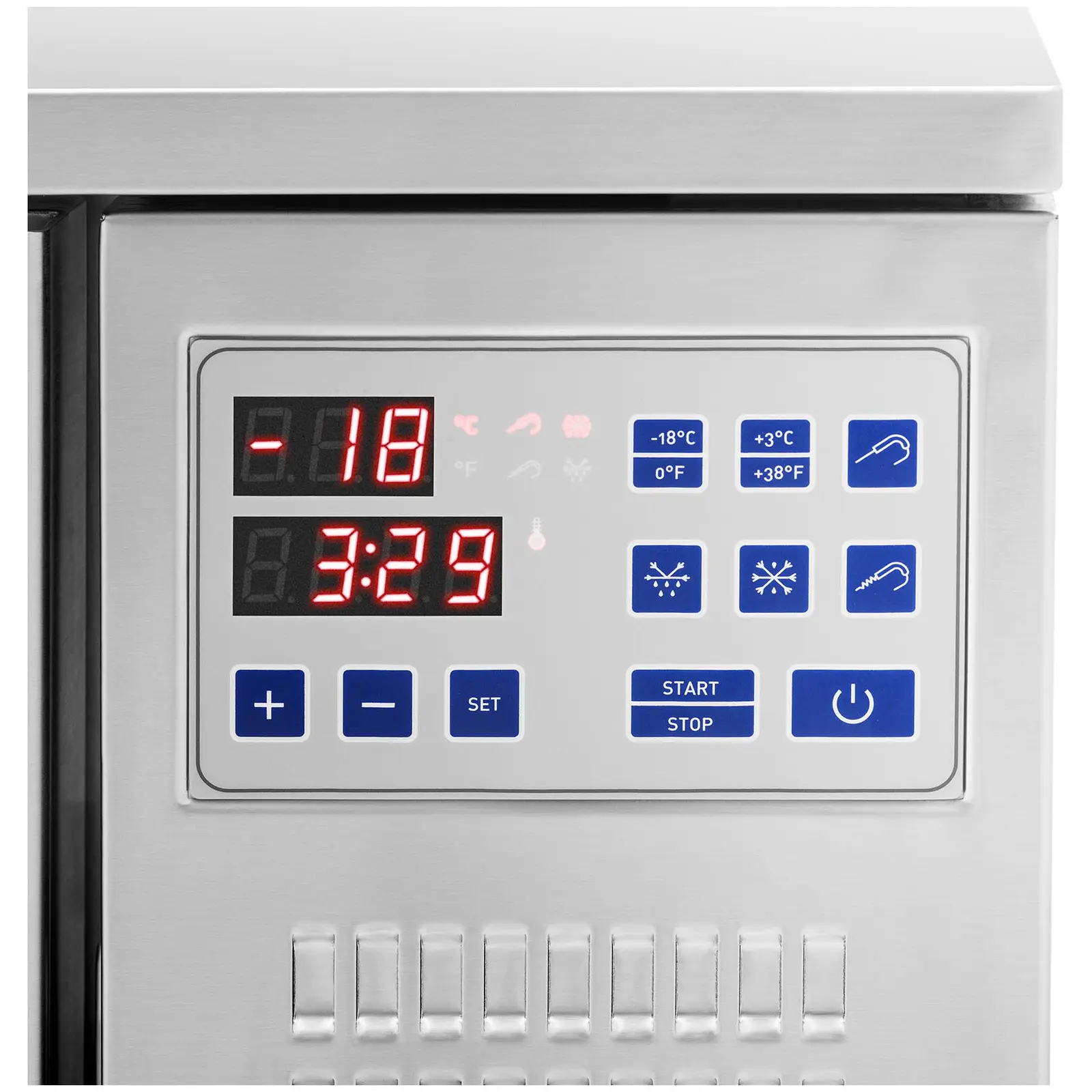 Szybkoschładzarka posiada intuicyjny elektroniczny panel sterowania z wyświetlaczem LED.