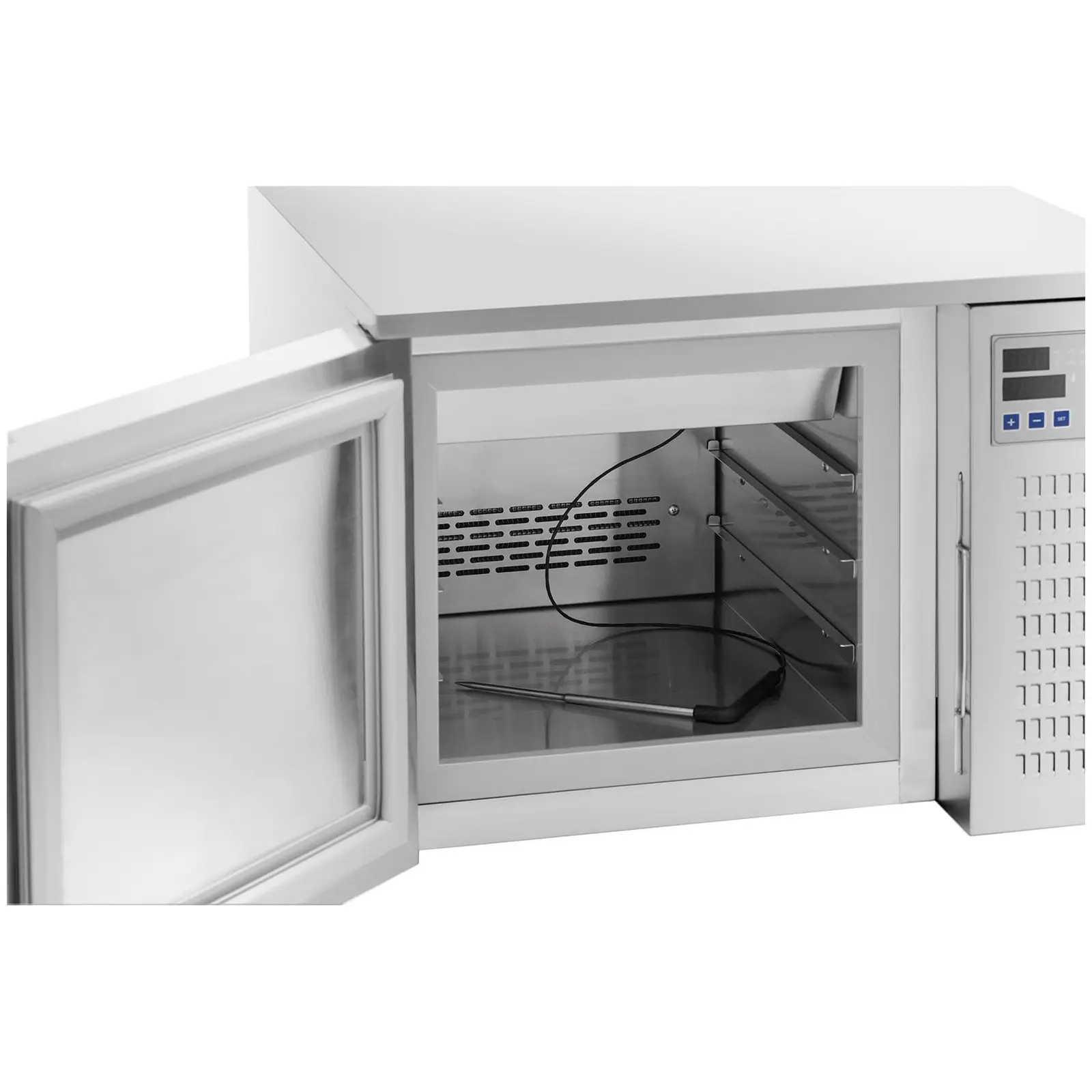Urządzenie umożliwia szybkie schładzanie do +3°C  z wydajnością do 7 kg w 86 minut, bądź zamrażanie do -18°C z wydajnością do 4 kg w 209 min.