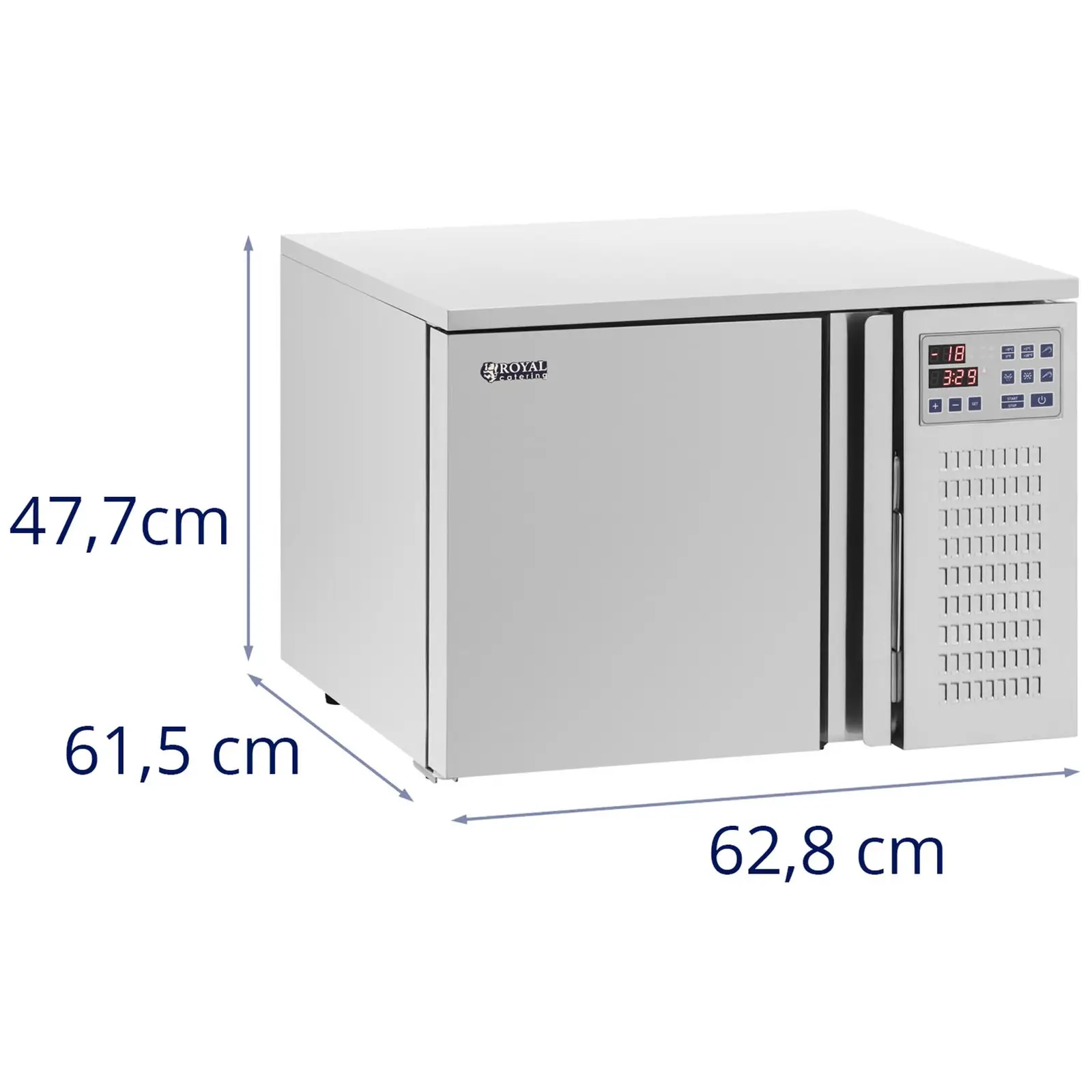 Zamrażarka szokowa Royal Catering sprawdzi się jako wyposażenie restauracji, domów weselnych czy firm cateringowych. Umożliwi błyskawiczne chłodzanie bądź zamrażania produktów spożywczych i przygotowanych potraw. Pozwala to ograniczyć proces namnażania się bakterii, a tym samym przedłuża czas przechowywania żywności. Błyskawiczne zamrażanie zachowuje pierwotne właściwości potraw (ich konsystencję, kolor i smak), dzięki wytwarzaniu wielu drobnych kryształów lodu. Nie uszkadzają one struktury wewnętrznej produktów w takim stopniu jak duże kryształy powstające podczas powolnego zamrażania.