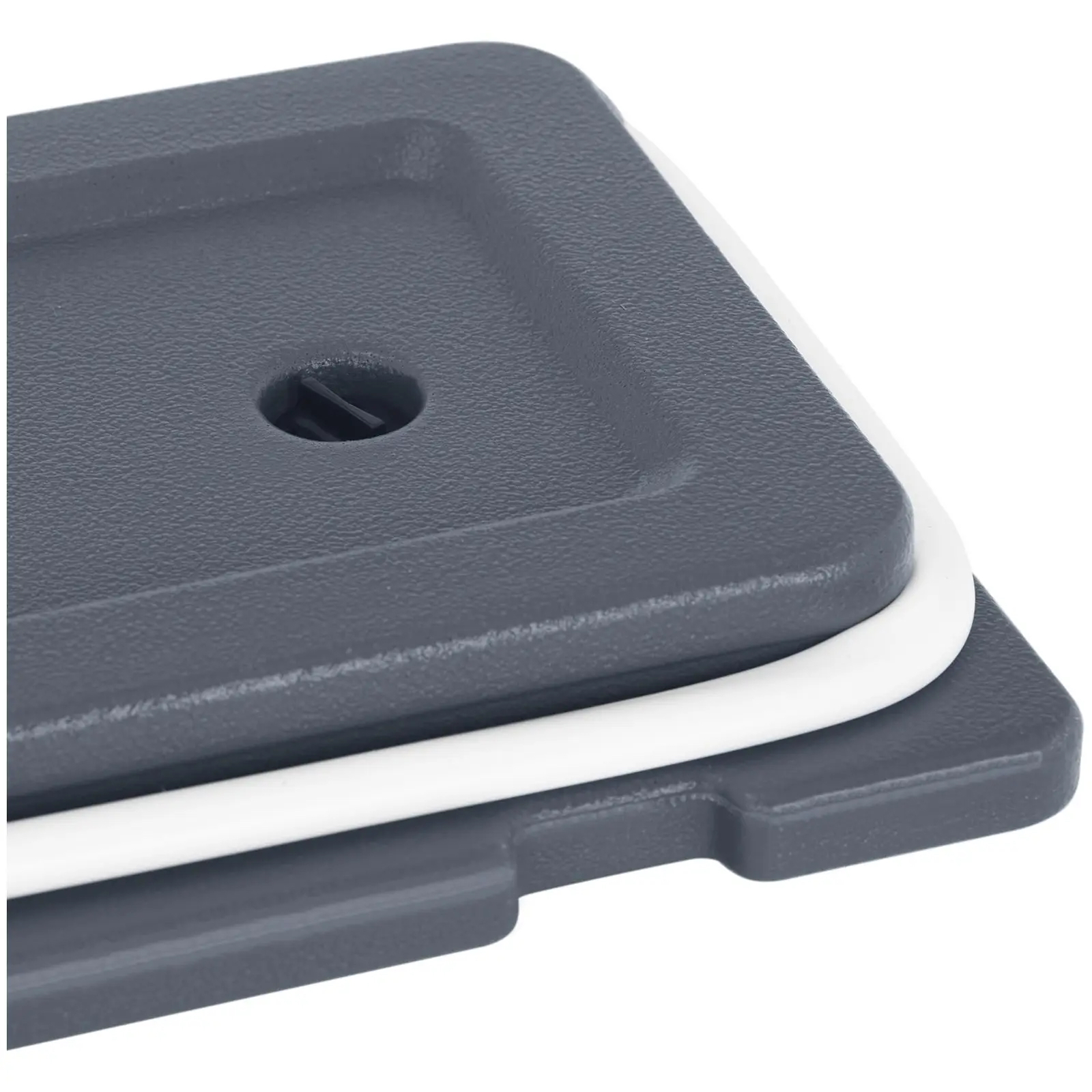 Pojemnik wykonany został z wysokiej jakości, łatwego w czyszczeniu polipropylenu. Wyposażono go w zamykaną klamrami pokrywę z uszczelką i zaworem odpowietrzającym.