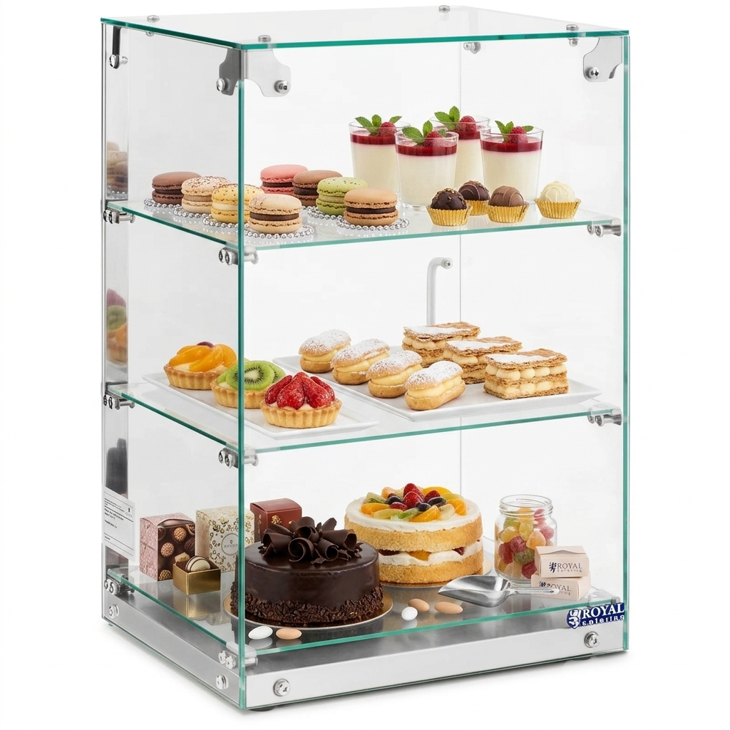 Witryna bufetowa Royal Catering pozwoli w elegancki sposób wyeksponować rozmaite artykuły spożywcze w sklepach, kawiarniach czy cukierniach. Sprawdzi się także na stołówkach w kantynach i bufetach. Spełnia wszelkie wymagania branży gastronomicznej.