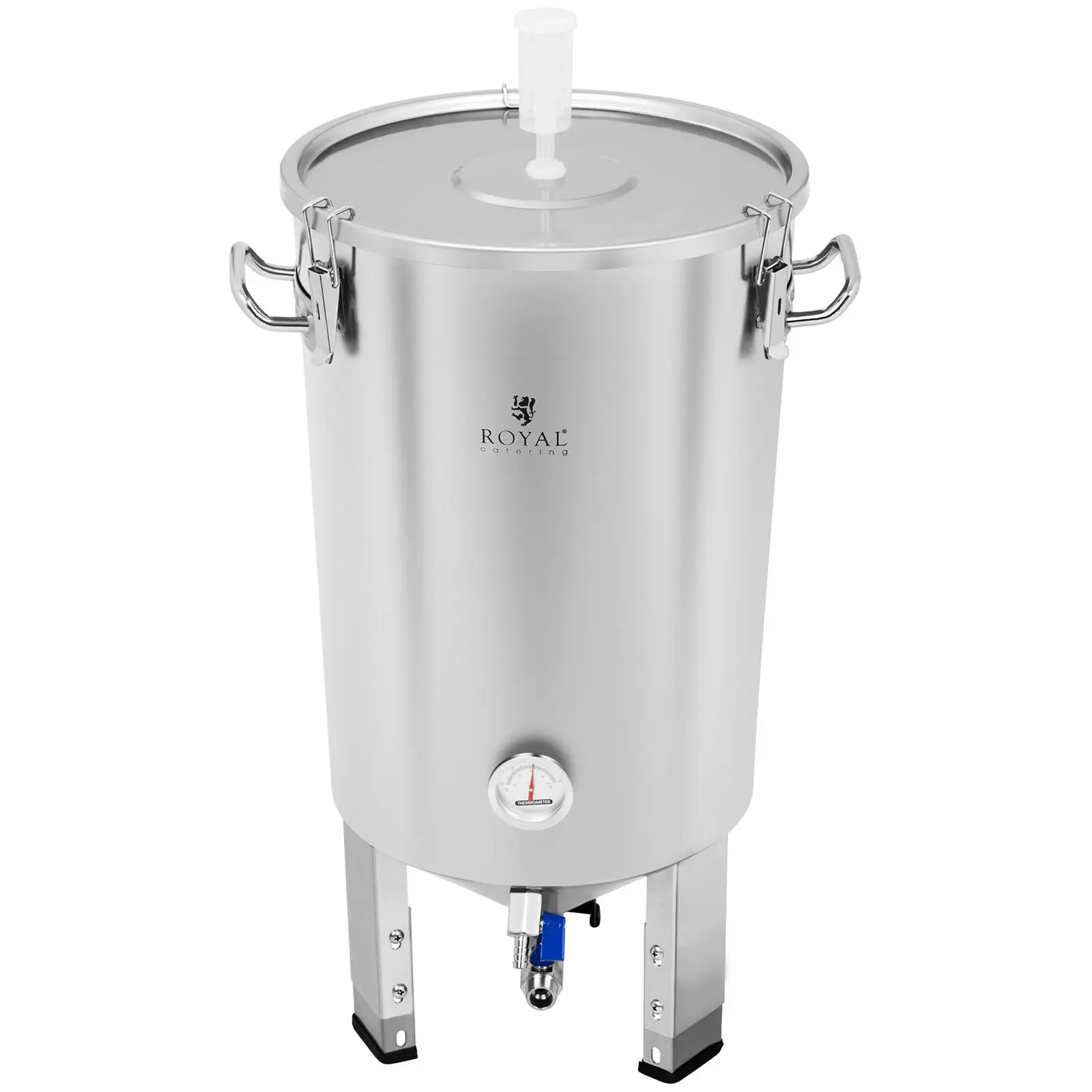 Pojemnik fermentacyjny marki Royal Catering sprawdzi się zarówno w użytku profesjonalnym, jak i amatorskim. Umożliwi bezpieczne przygotowywanie wina lub piwa. Zbiornik spełnia wymagania dla branży gastronomicznej.