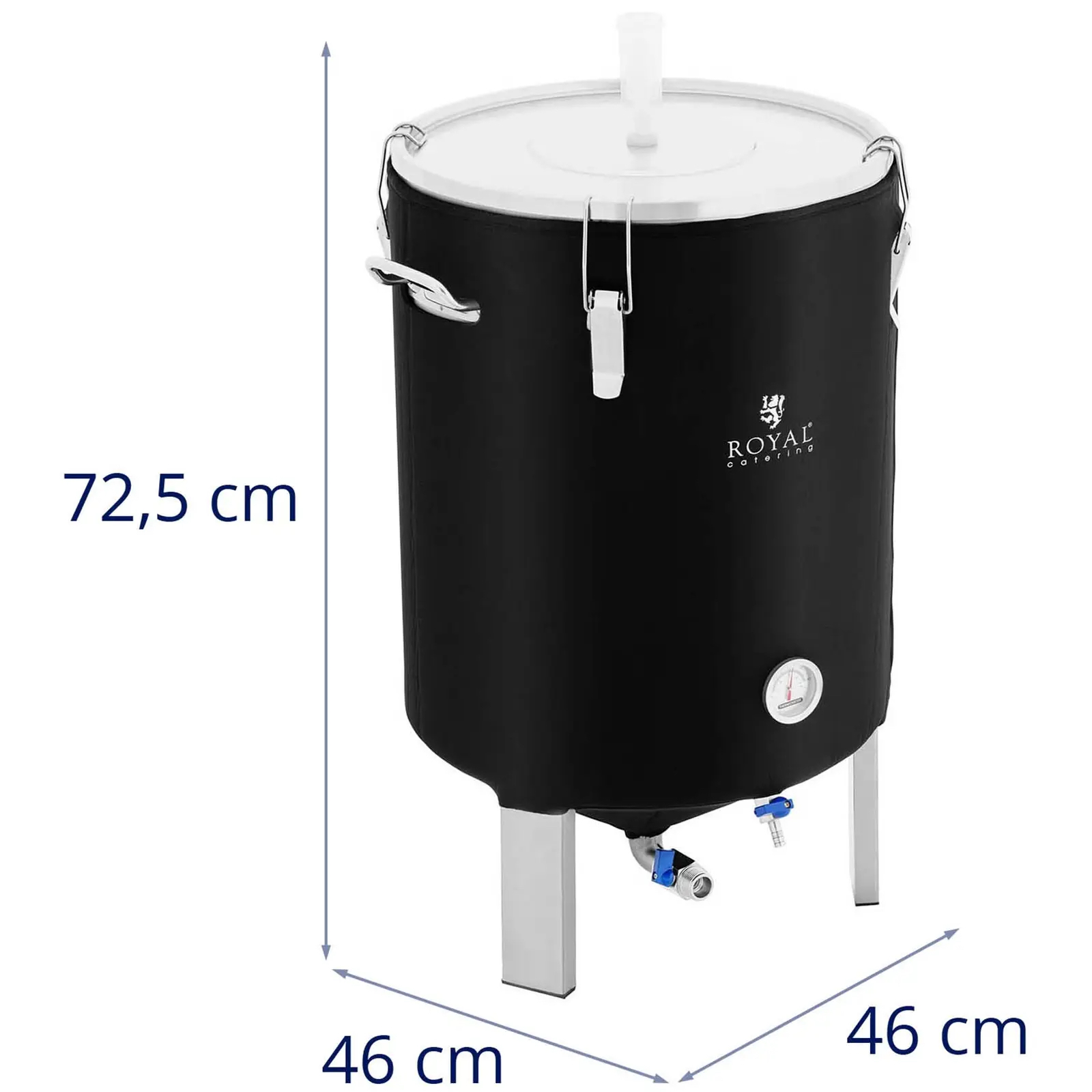 Pojemnik fermentacyjny marki Royal Catering sprawdzi się zarówno w użytku profesjonalnym, jak i amatorskim. Umożliwi bezpieczne przygotowywanie wina lub piwa. Zbiornik spełnia wymagania dla branży gastronomicznej.