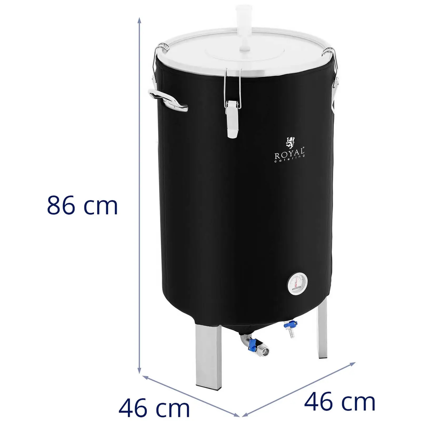 Pojemnik fermentacyjny marki Royal Catering sprawdzi się zarówno w użytku profesjonalnym, jak i amatorskim. Umożliwi bezpieczne przygotowywanie wina lub piwa. Zbiornik spełnia wymagania dla branży gastronomicznej.