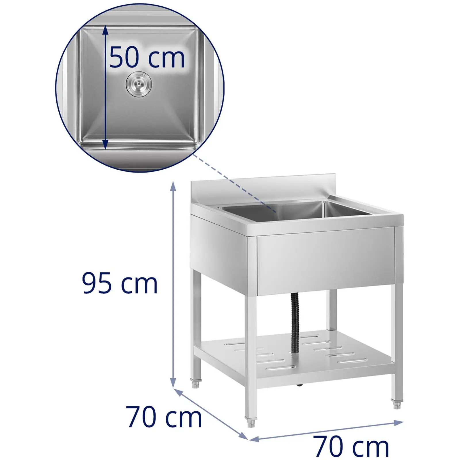 Zlewozmywak 1-komorowy, stół ze zlewem i półką 70 x 70 cm | 10011683