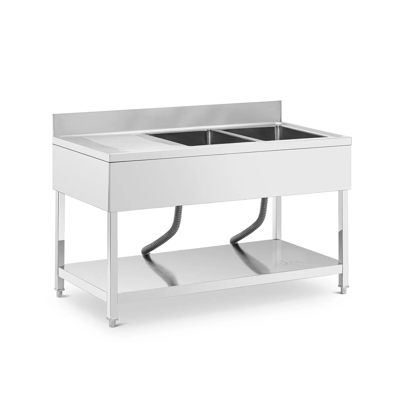 Zlewozmywak 2-komorowy, stół ze zlewem i półką 140 x 70 cm | 10013163